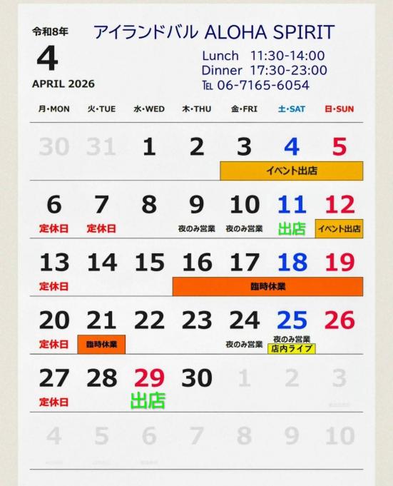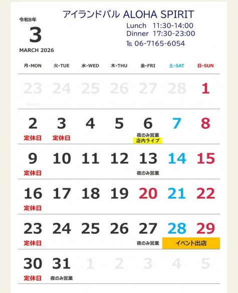 また、お客様同士の交流や繋がりを大切に、そして少しでも、笑顔になって頂けるよう定期的に、店内で音楽ライブ・ALOHA寄席 等を行っています。